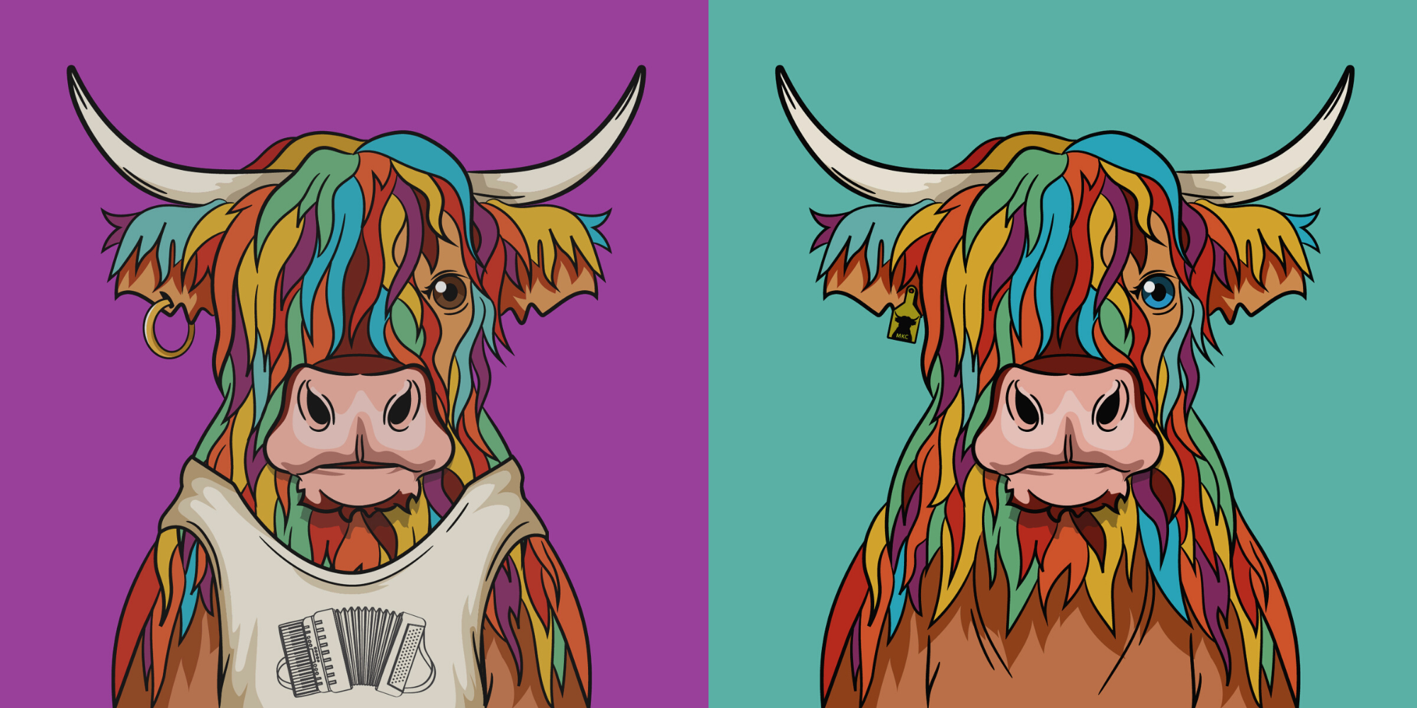 Each NFT should be seen as a unique piece of art, and while we aim to add utility and features, it cannot be guaranteed. Join us in our journey to build a magnificent stampede of colorful Highland cows!